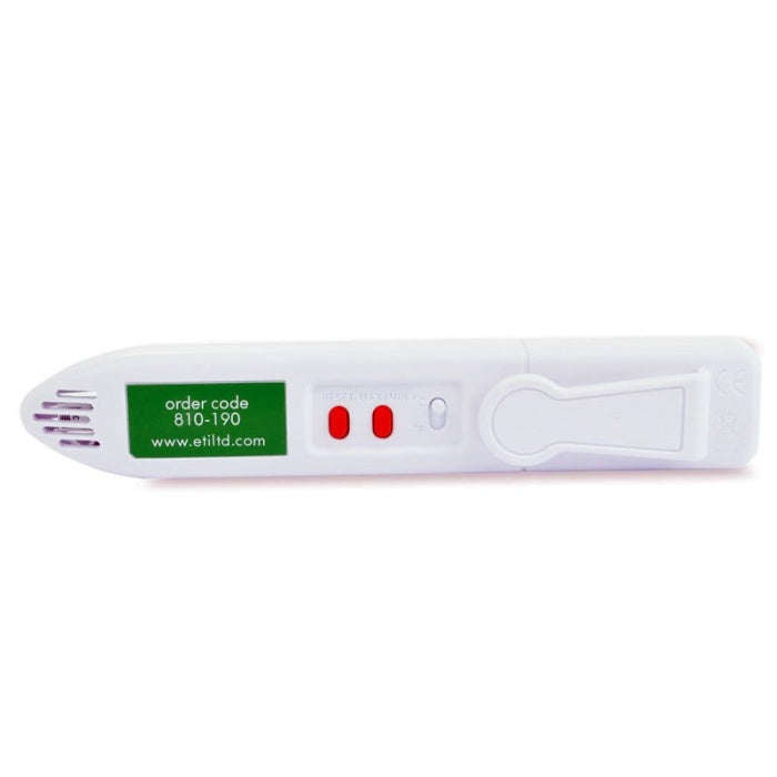 Deze ETI hygrometer met thermometer heeft de vorm van een pen en is voorzien van een groot, helder LCD-scherm dat tegelijkertijd de luchtvochtigheid en temperatuur weergeeft in het bereik van 20 tot 95% RV en 0 tot 49,9 °C.