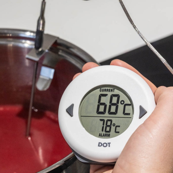 De roestvrijstalen probe‑clip voor dial thermometers is een simpel maar onmisbaar accessoire om je analoge thermometer‑sonde stevig op een rand van een kom, pan of maatbeker vast te zetten tijdens temperatuurmetingen. Dankzij de clip blijft de thermometer op de juiste positie, wat zorgt voor nauwkeurige en stabiele metingen zonder dat de sonde de bodem of zijkanten van de container raakt. Deze duurzame RVS clip is geschikt voor sondes met een diameter van Ø3 / Ø3.3 mm of Ø4 mm en is ideaal voor gebruik bij koken, jam‑maken, bakken en andere toepassingen waarbij handen‑vrije bevestiging gewenst is.